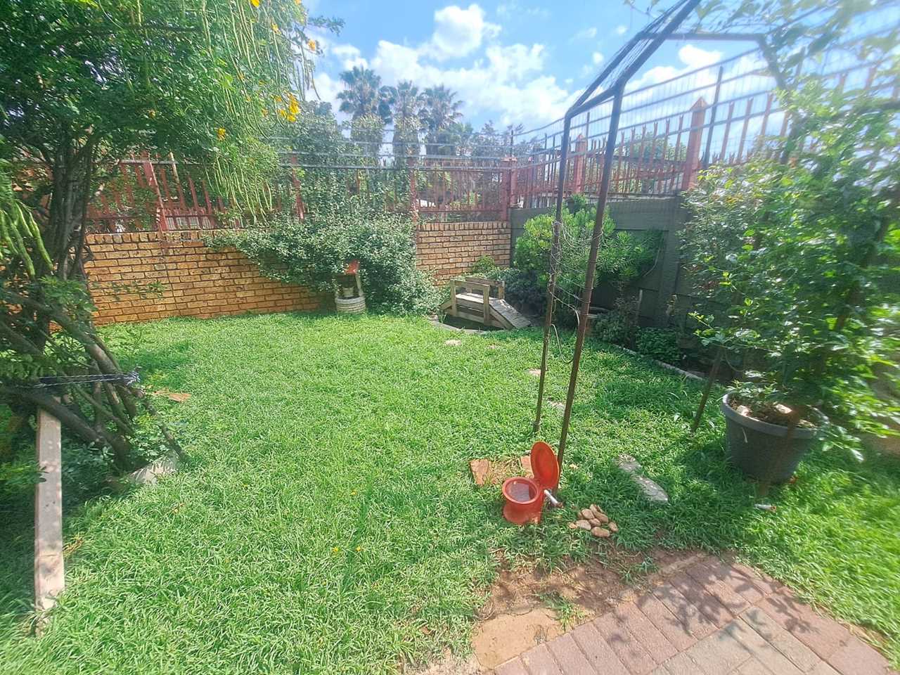 Beautiful, low-maintenance garden with 2 Wendy houses for storage or hobby space.