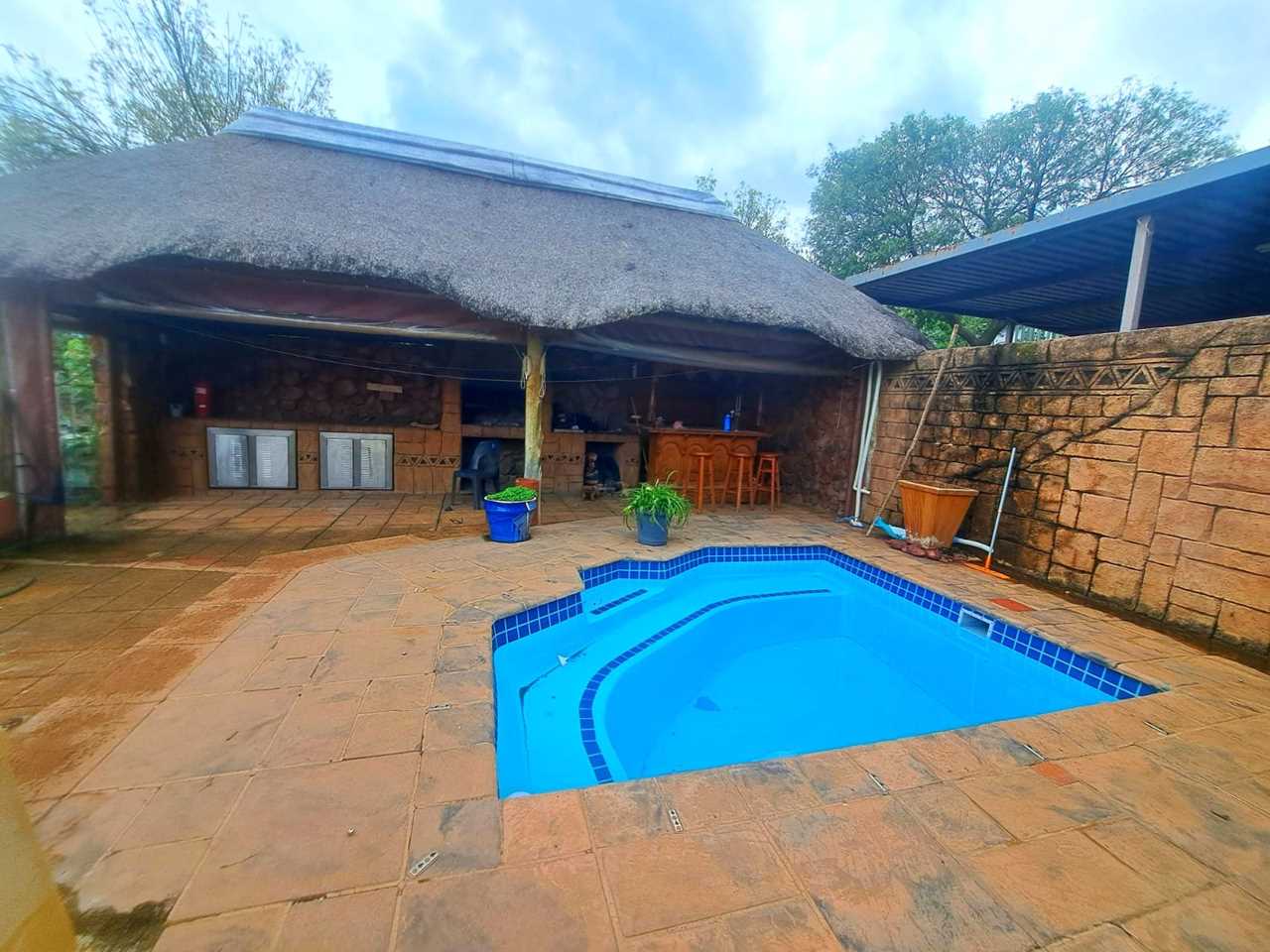Enjoy relaxing in the closed veranda with a beautiful view, perfect for entertaining or quiet evenings. The property also includes a sparkling swimming pool and a large carport that accommodates up to 5 cars.