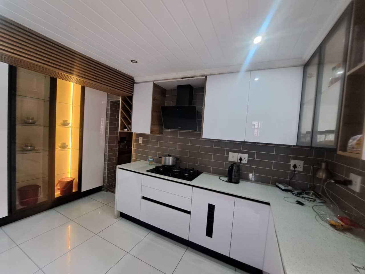 The home boasts a modern kitchen with gas stove, ample cupboard space, and a separate laundry room for added convenience. The main bedroom features a private en-suite bathroom, while the other bedrooms are spacious and ideal for family living.
